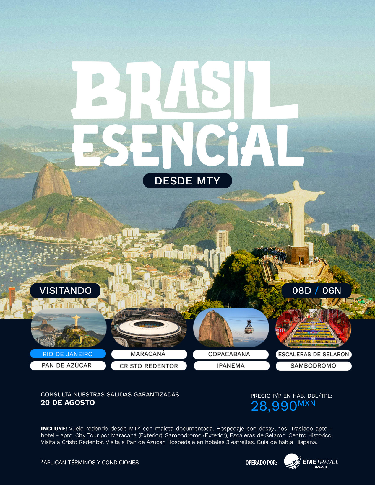 Nota: El orden de este itinerario puede variar o sufrir modificaciones por parte de la aerolínea o servicios terrestres, respetando siempre el contenido del mismo.